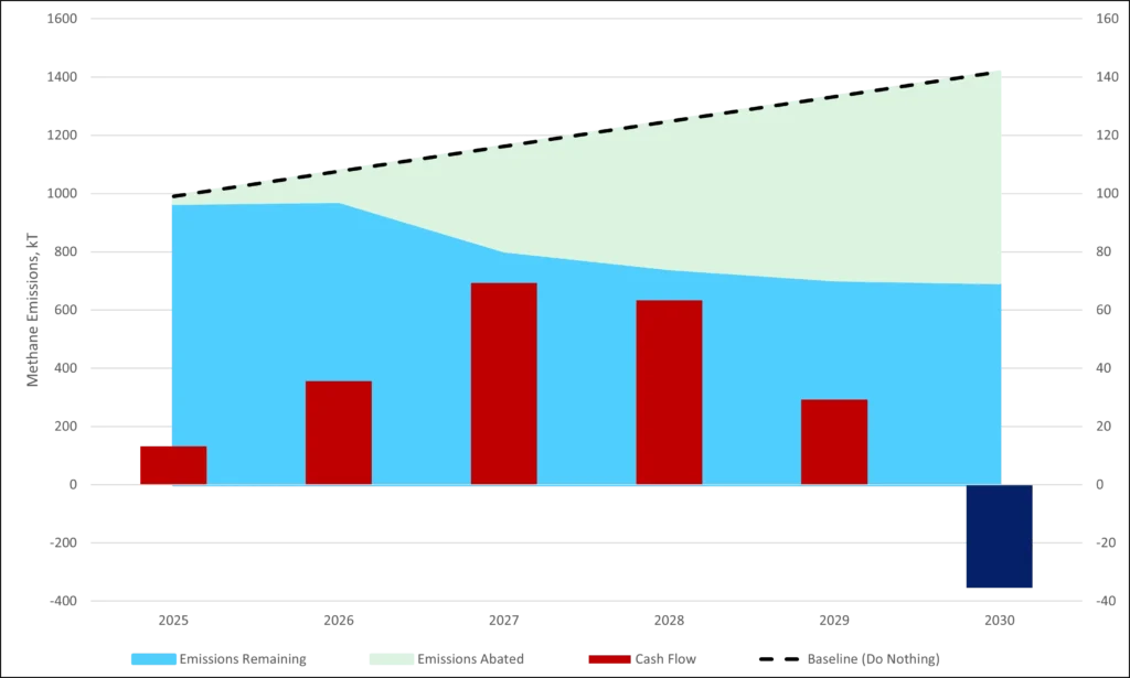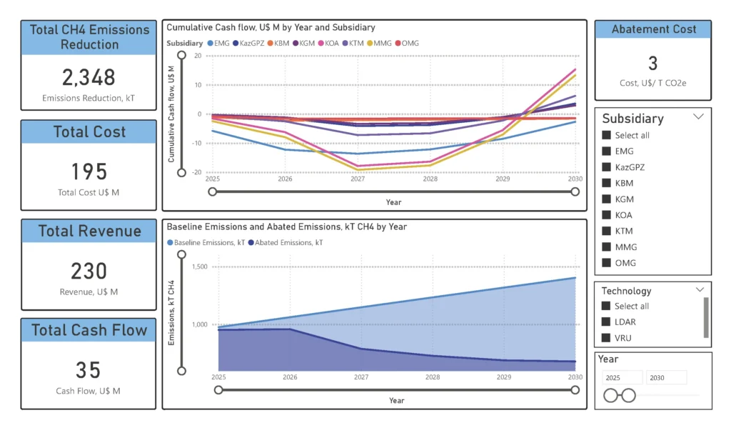 Supporting economic and financial modelling enabled informed investment decisions, ensuring that methane reduction targets were both technically achievable and commercially justified.